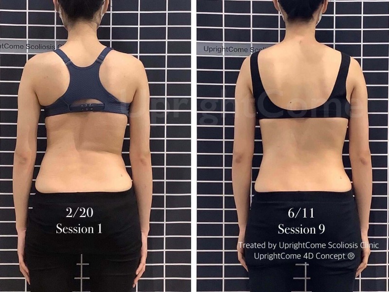 又到了充滿感謝的畢業季,來自台中22歲的脊椎側彎女孩即將完成療程,從挺立康畢業。原本右腰的摺痕,消失了!腰線也變對稱了。