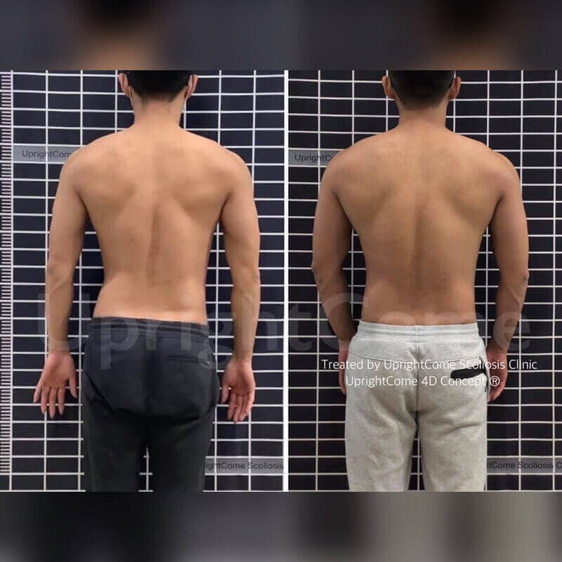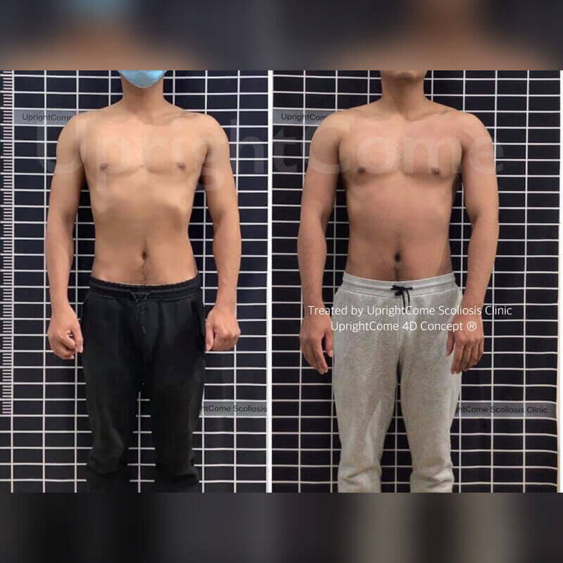 這是一位來自嘉義 22 歲脊椎側彎男孩,腰部側彎造成的腰痠及左肋凸出總是困擾著他,經過挺立康專屬 4D 脊椎側彎療程後,體態變對稱了,痠痛也得到改善。