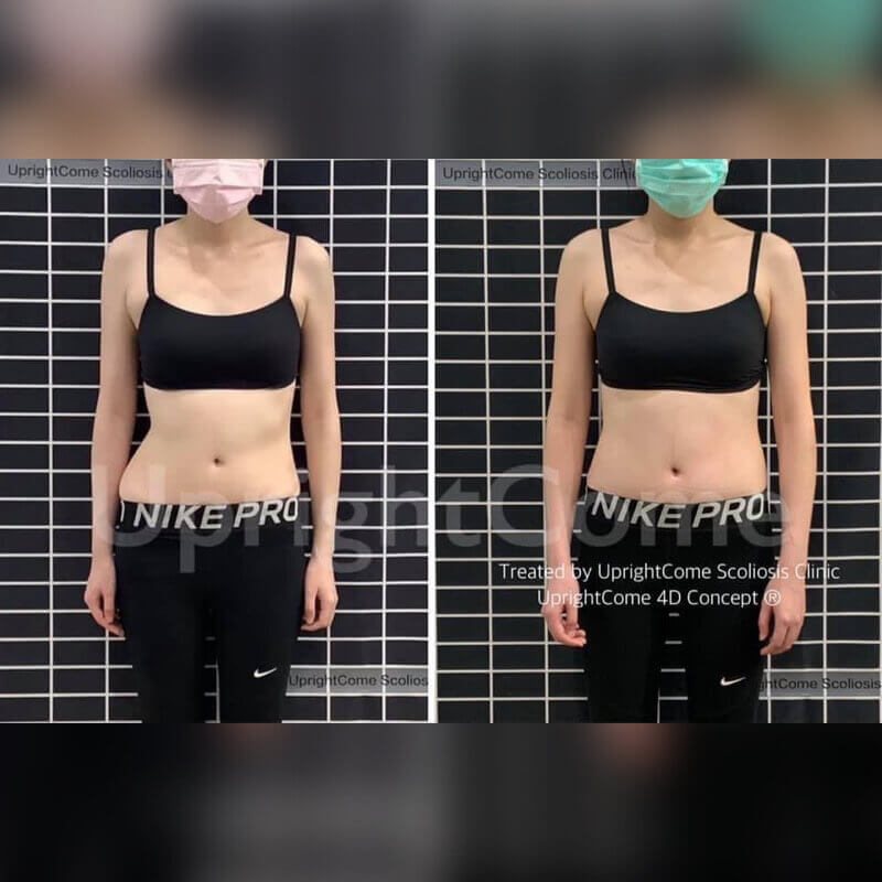 這是一位 25 歲腰椎側彎女孩,想再給自己一次變正的機會,決定千里迢迢從基隆來挺立康。經過 7 次的 4D 專屬治療後,女孩在意的腰線逐漸變對稱了 ,身高也長高了 1 公分!