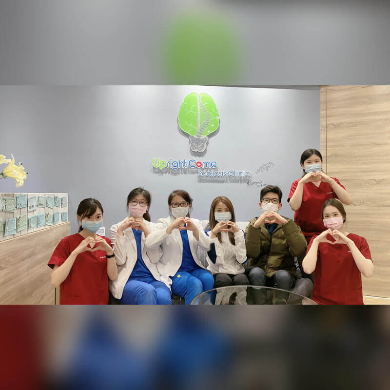 有一次, 不小心錯過了治療時間,當抵達的時候,女孩沮喪的神情,我們知道妳真的很期待每一次來治療的日子。即便天氣再冷,仍堅持練習,診所舉辦團體治療,大家一起做特定的矯正動作和我們比賽看誰能撐最久, 雖然有 71 度的重症脊椎側彎的妳,是那次治療中撐最久的一位,那樣的毅力與堅持,也激勵了現場的側彎人!