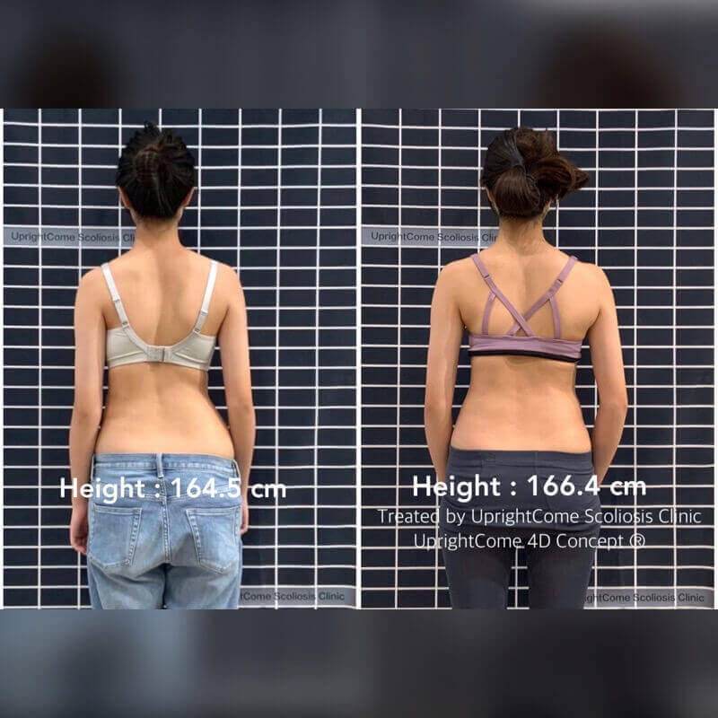 每天都很認真練習,她那份堅持讓團隊佩服,隨著外觀體態一點一滴的改變,在 10 次治療後,長高近 2 公分, 腰椎側彎角度從 51 度改善至 35 度,脊椎側彎嚴重度也從重度側彎降為中度側彎。 女孩媽媽感動的說:「 每次回診都是不好的結果,只有這次是笑著出來。」