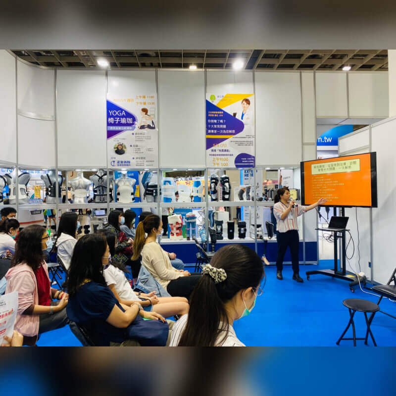 今日曾琴雁主任與羅組長受邀至 2021 輔具展,一同帶領大家破解側彎迷思