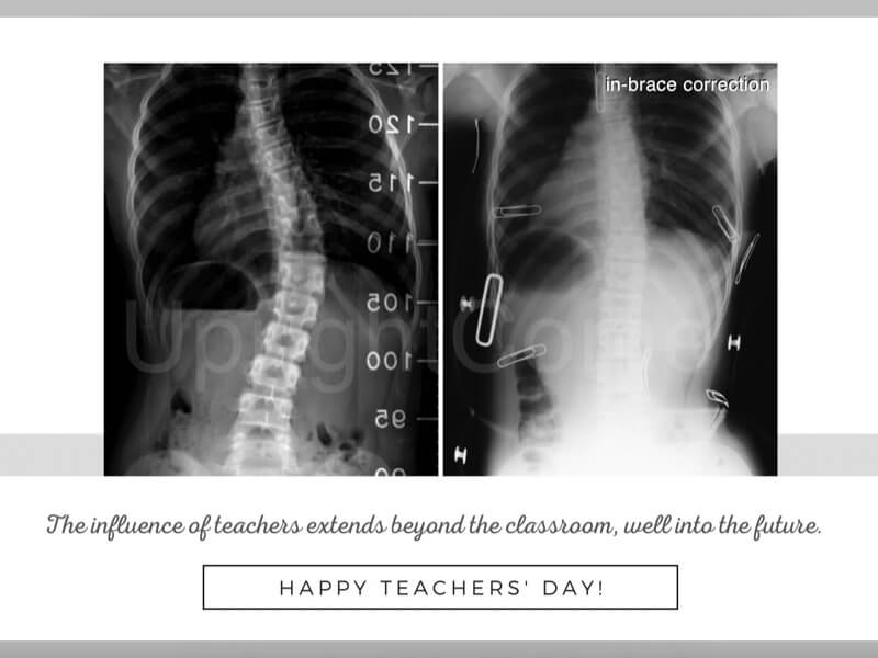 「 老師 」在側彎孩子心中其實是不可或缺的陪伴,青少年時期正是側彎快速惡化的階段,治療有時會搭配「 背架 」輔助,老師在這過程中就非常重要!孩子可能會抗拒或逃避,也會在乎同儕的看法...等等,這時需要老師輔導孩子以正面的角度去看待側彎,也讓其他同學有正確的觀念,讓每個小樹苗都能快樂的成長茁壯。