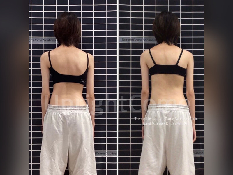 經過近一個月的 挺立康4D初階治療:肩胛骨變平、胸線和腰線對稱、痠痛減緩!療程結束那天,女孩喜滋滋的說:「 我有感受到自己的進步,不只體態變對稱,痠痛也緩解了,你們好厲害! 」