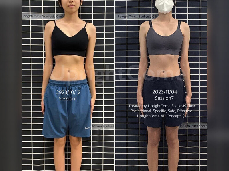 一位 16 歲 35 度 S 型 脊椎側彎女孩,今年暑假媽媽發現她的身體歪歪的,經過檢查發現了脊椎側彎,正值青春期的她,非常在意自己的外觀體態,為了讓自己的體態變得更漂亮,她決定前來接受治療,經過 挺立康 4D 初階治療 後,腰線逐漸對稱、骨盆回正、身高長高 2 公分。