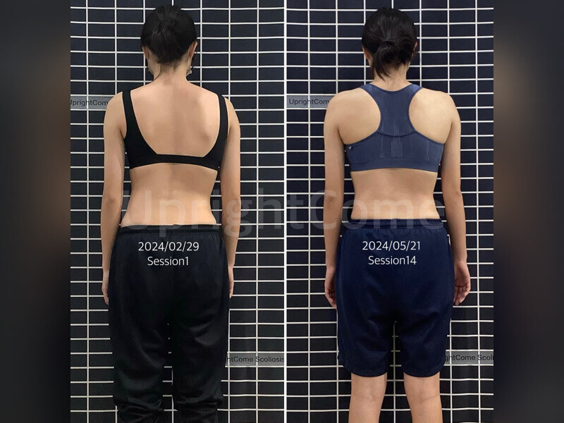 一位 17 歲 35 度 S 型脊椎側彎女孩,因小學時期發現脊椎側彎,即穿戴背架,但因不適和影響睡眠而放棄。隨著時間推移,體態越來越差,X光顯示側彎惡化,經 挺立康4D專屬治療