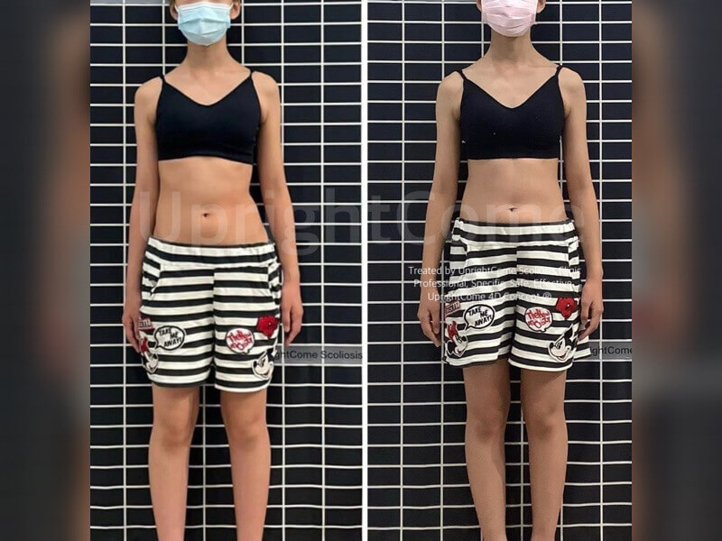 這次,我們要分享一位 11 歲小女孩的故事,她的腰椎側彎達到了 45 度,經過曾總院長專業的評估後,我們發現若不及時進行治療,她的側彎惡化風險將高達 90% 以上,為了減緩惡化及開刀的風險,她和家人選擇挺立康,展開了矯正療程,在挺立康專屬 4D 治療 後,她的進步令人驚喜: