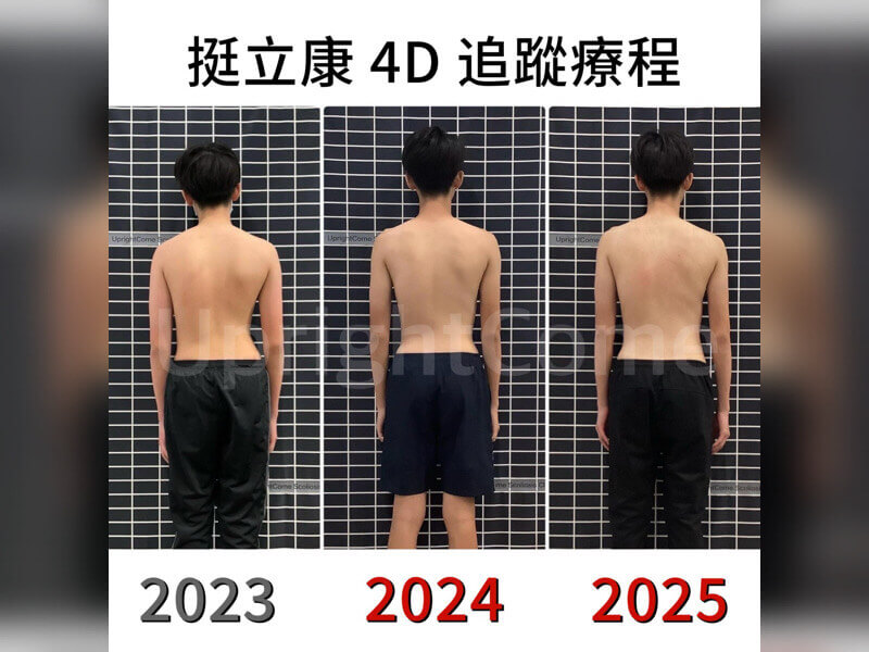 透過挺立康 4D 專屬療程,從 2023 年初診到現在,男孩與家人的高度配合,將矯正融入日常生活,並定期回診,最終成功將側彎控制住,更令人欣慰的是,他的體態、背後旋轉與 X 光角度都顯著改善,從中重度側彎下降至中度!這段旅程中,我們見證了男孩的堅持與自律,也感受到家人的陪伴與支持對治療的重要性!