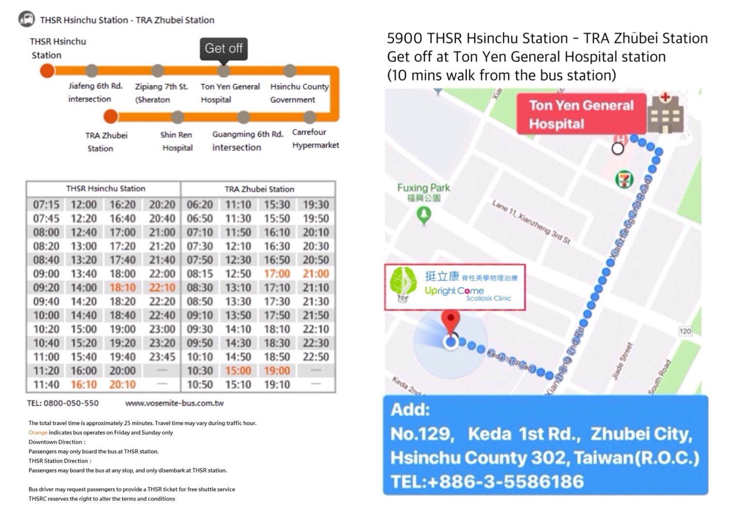 A:You might take THSR shuttle bus and off at Ton Yen General Hospital station, 10 mins walk from the bus station